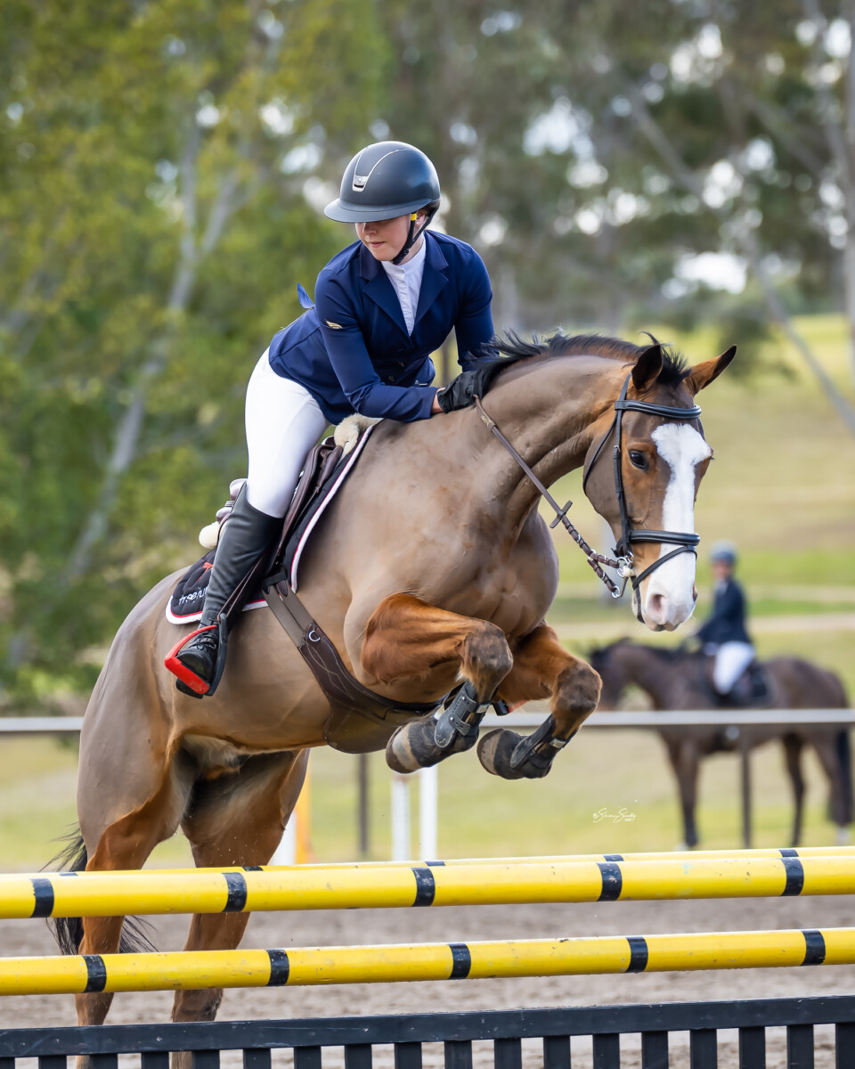He is finely built with 3 beautiful paces, currently competing confidently showjumping at 90cm and has done a couple of 1ms with potential to go higher. Very is easy to handle at home and off property.
