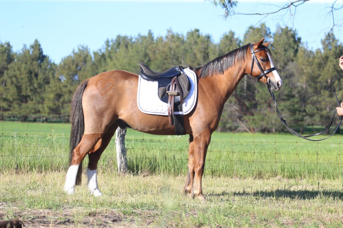 Apollo has been a very loved pony by his family and junior riders he has attended Pony Club, Stockman Challenge Clinics, Cross Country Training, Showjumping (competing 50cm with plenty of scope to go higher) Dressage ( Competing Preliminary) but with 3 super paces and a super hind leg and a trainable character he has plenty of talent to go up the grades already training novice and some lateral movements as well.