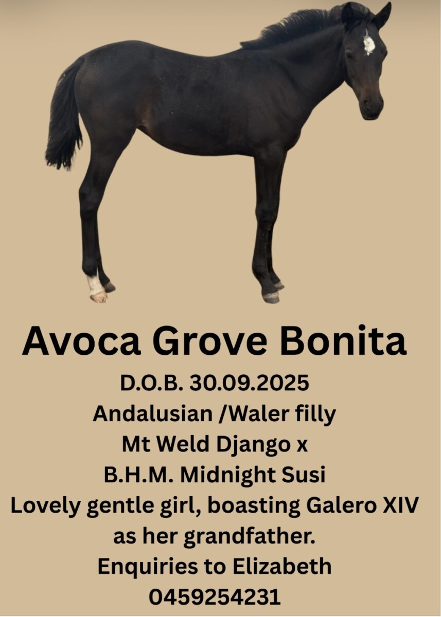 I believe Bonita will grow into a very lovely type, suitable for dressage, working equitation, and cattle work.