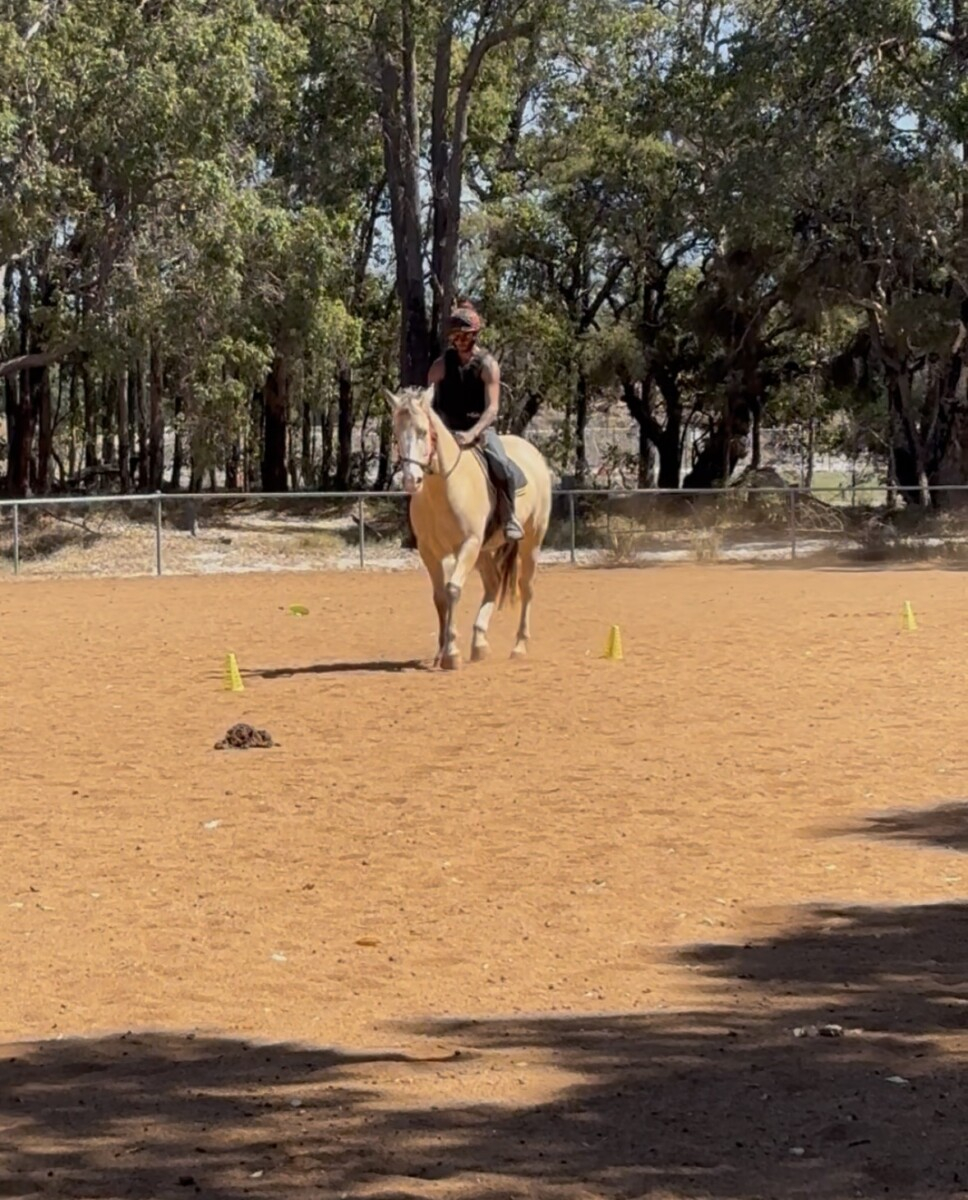 Off farm he has worked well under saddle whether it’s trail riding through the forest, the beach, adult riders etc, where he has shown to be very sensible and willing. He works well alone and in company.