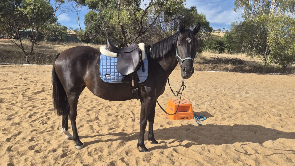Started breaking in, has been sat on with saddle and bridle as well as bareback. Move forward from the leg, turn and one rein stop. Our rides have been uneventful, did not care at all about me climbing on her.