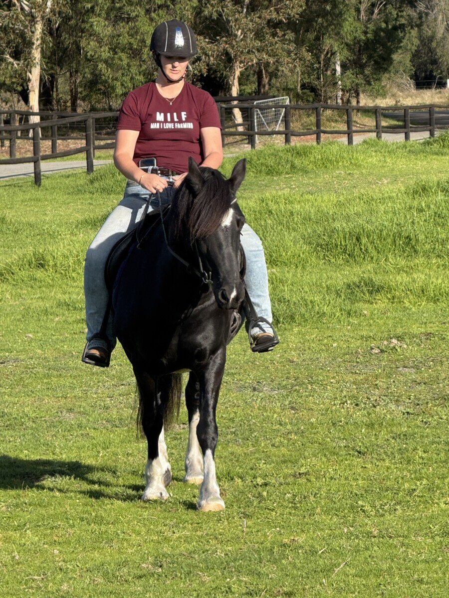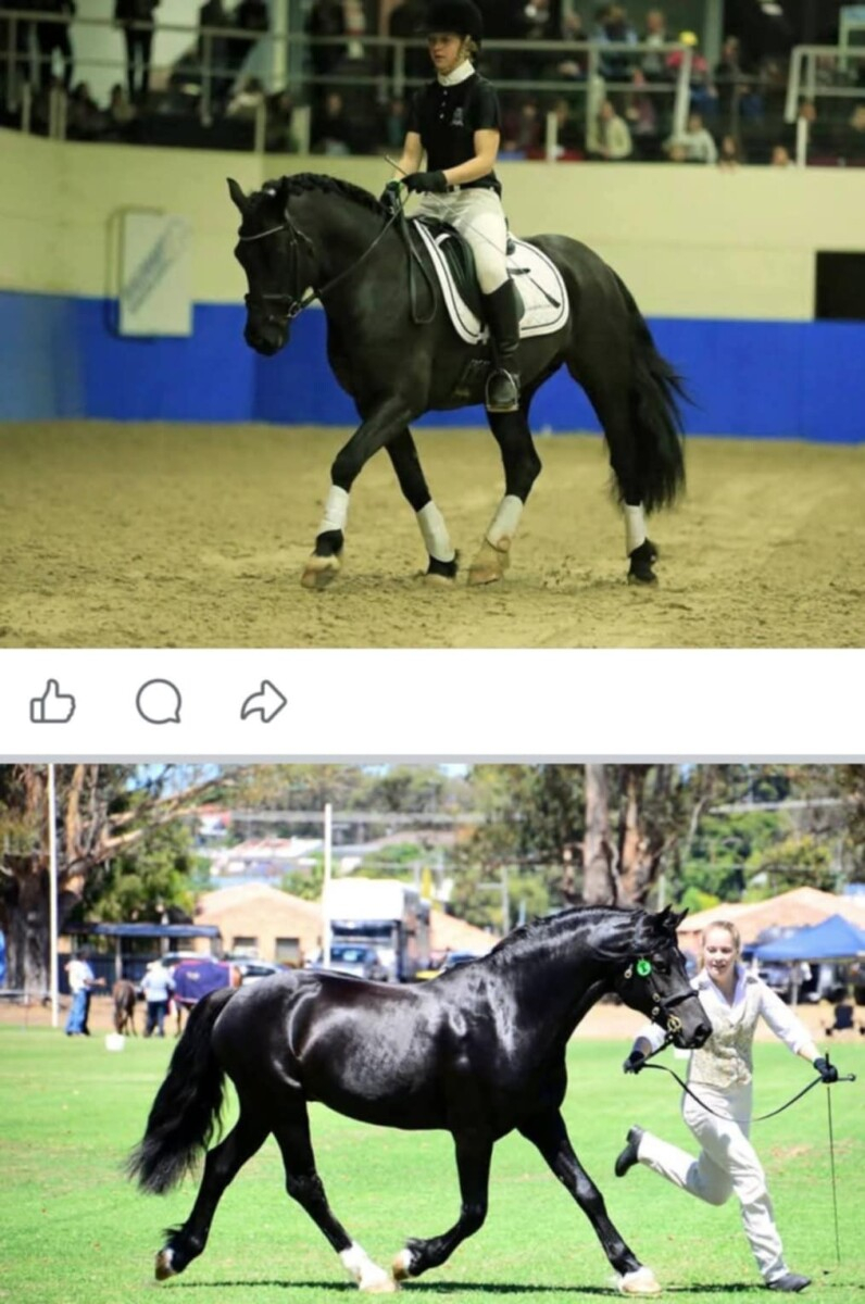 Gift is 8 years old. Broken in as a 5 year old lots of groundwork, started her ridden education which was coming along nicely, due to no rider she was turned out for approximately 18 months,she was bought back into work by a local trainer in Northam in late 2024 and spent 2-3 months learning to be a useful pony again. Good ground manners, floats , worms, farrier all ok. Ridden education is basic. Backs up. Side passes. Stops easily.more work required at the canter ( balance/leads) happy in the arena, used to obstacles. Play day events. And enjoyed a cattle day camp. We purchased gift for myself and daughter Due to herniating a disc and daughter now working long hours away gift is sitting in the paddock again, bored and fat. She would excel at in hand. Hacking, stock work, allrounder. Her breeding speaks for itself. Not a beginners horse, nor nervous riders. She has more to learn and is quick to learn, experienced, knowledgeable, kind home with someone who can genuinely put the effort in and see the rewards. Gift will only go to the best of homes . Last pic is sire..