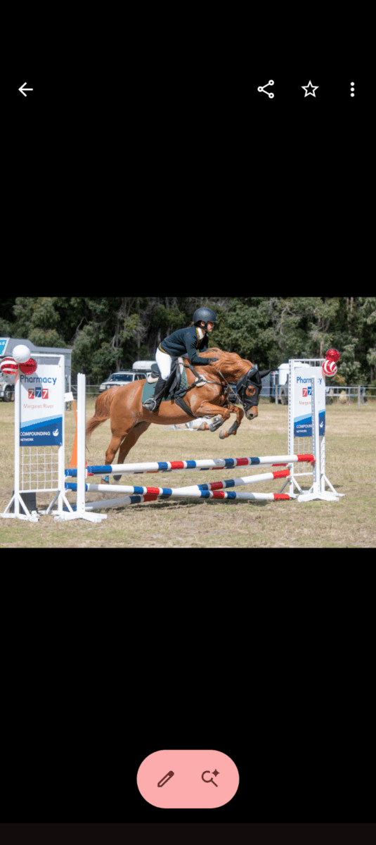 Flicka has been exposed to pony club and show jumping events where she has been placed in 75cm with the potential to go higher with a confident rider.