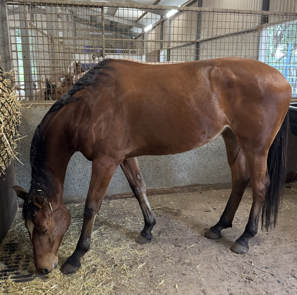 Quinta self loads onto straight or angled floats, she’s easy to do everything with: Rug, catch, groom, farrier, bodywork, saddle up. She is perfectly happy paddocked by herself or with friends (although she is usually top of pecking order)
