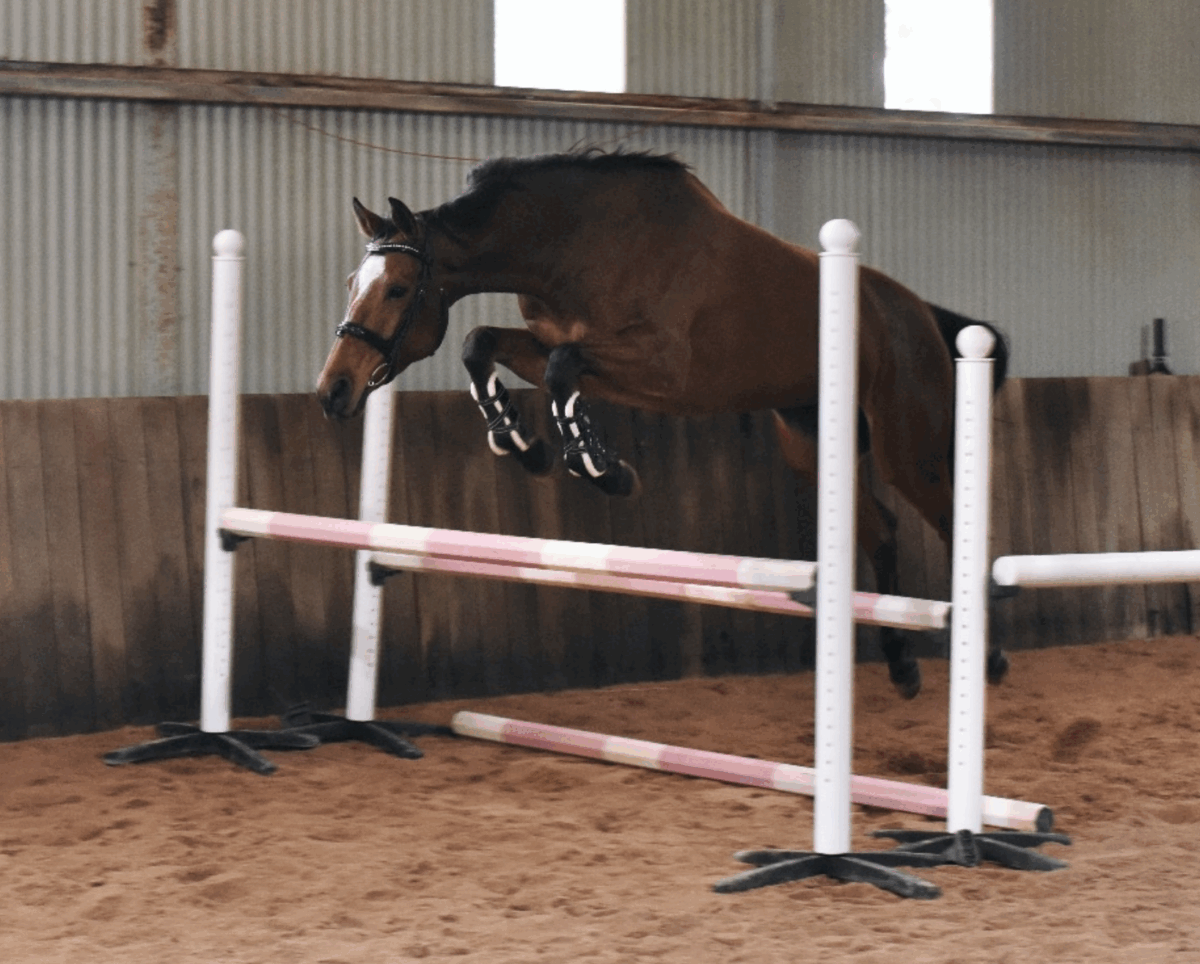 Quinta can be quite cold backed when first warming up, she has never done anything silly and very quickly works out of it (usually a 2 minute lunge will do) She has established basics on the flat and has jumped up to 80cm with Rosie Olivier, showing great potential to easily rise up the ranks!