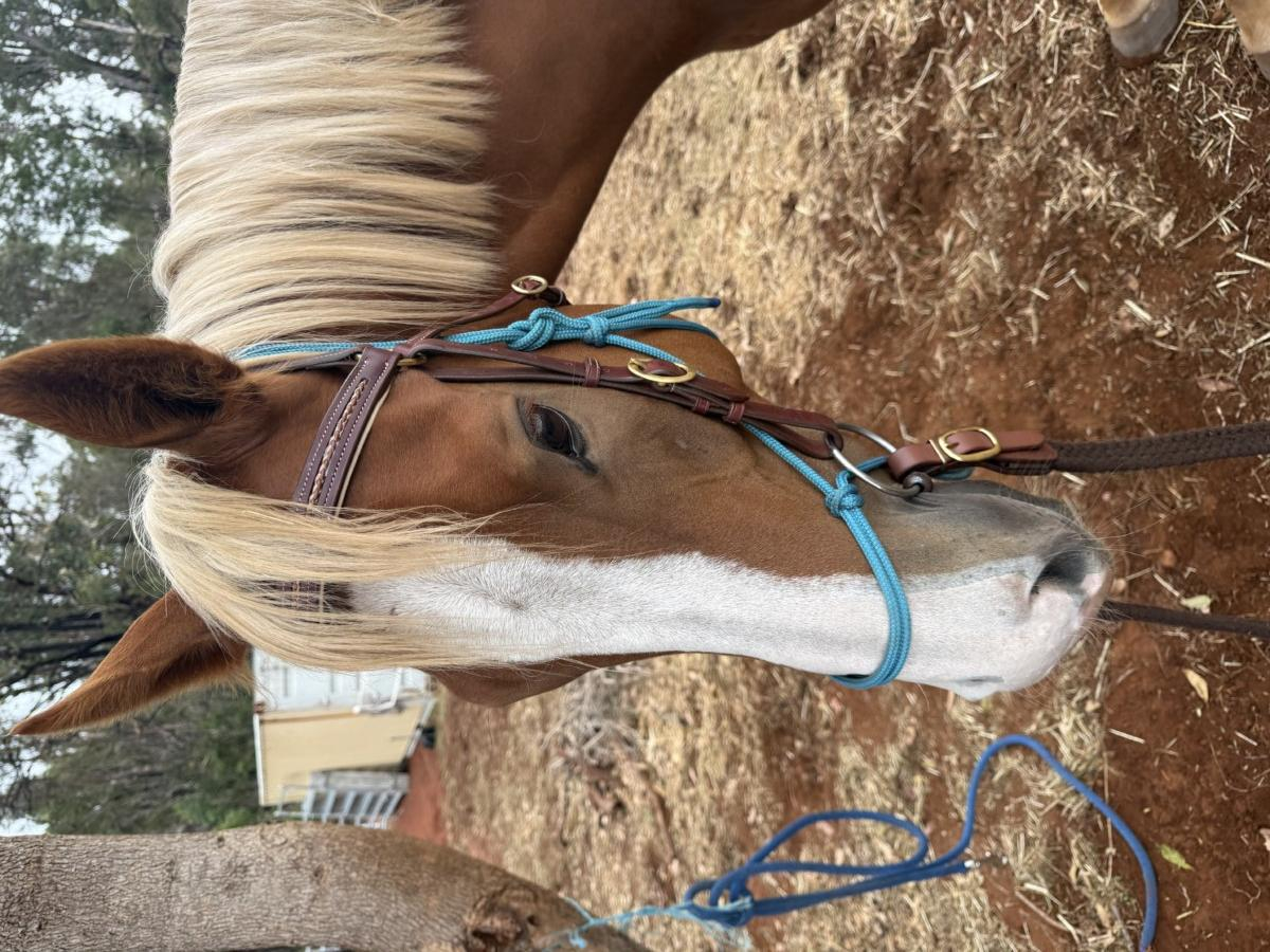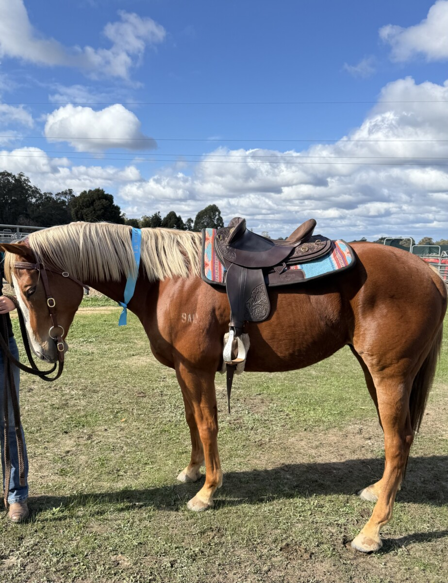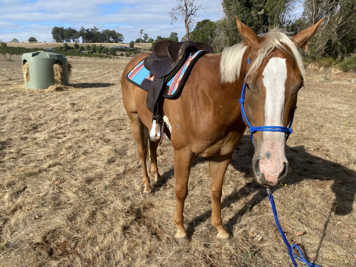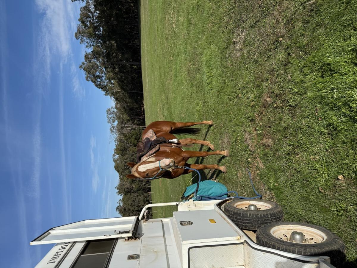 Harley, New Expression, is a very rare and eye catching thoroughbred. Lightly raced and retired as a 4yo, he has lots of potential ahead of him. He’s been out on cattle, ranch sorting and placed, trail riding and trips to the equestrian centre. Often mistaken for a quarter horse! He’s great to float and great for the farrier. He’s been an absolute delight to have, very relaxed and laid back fellow, but I have fallen pregnant and no longer have the time he deserves.