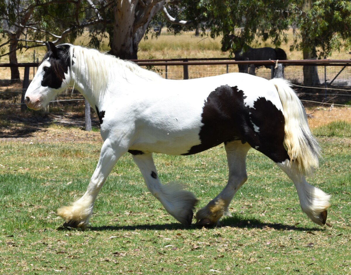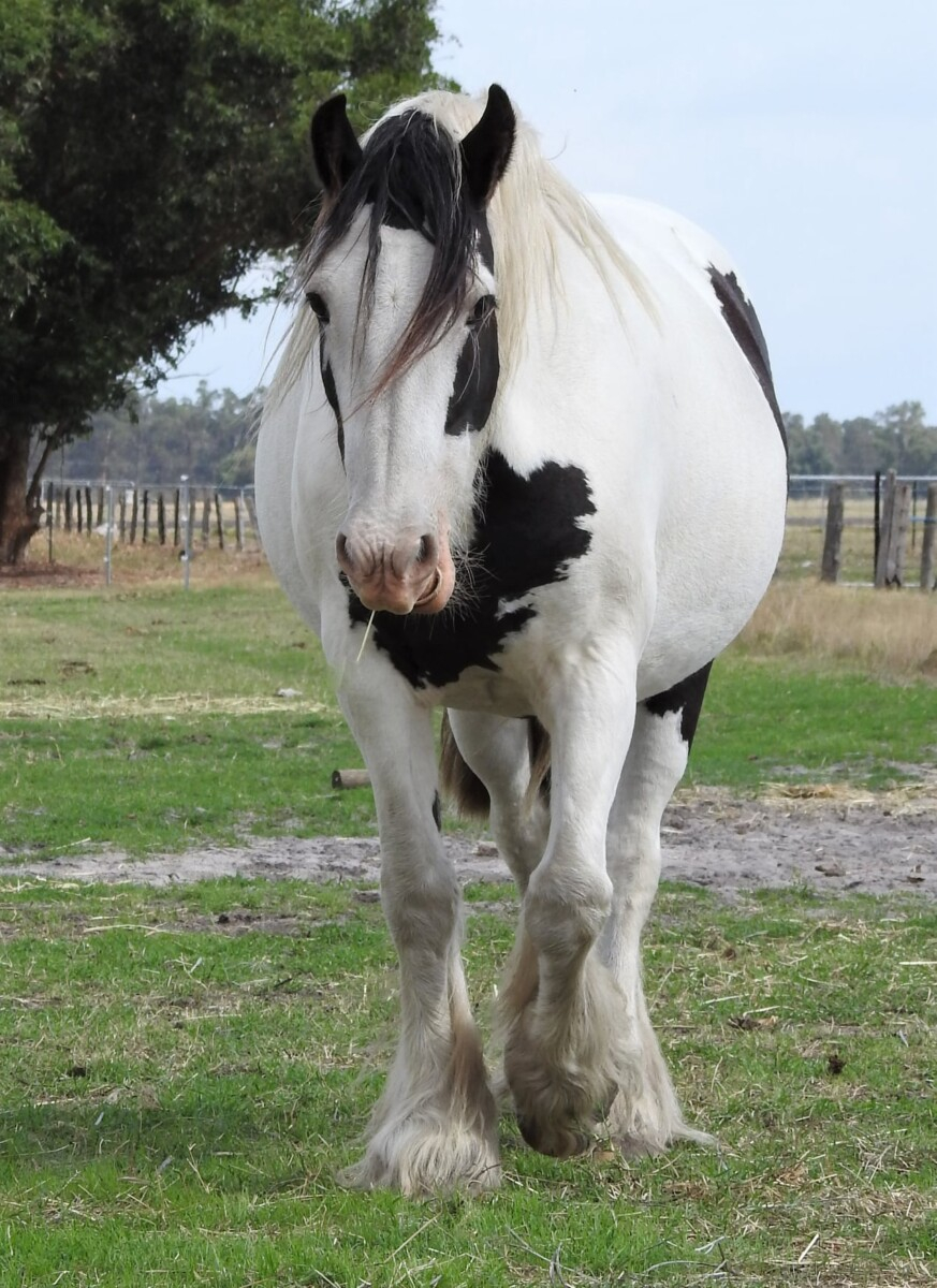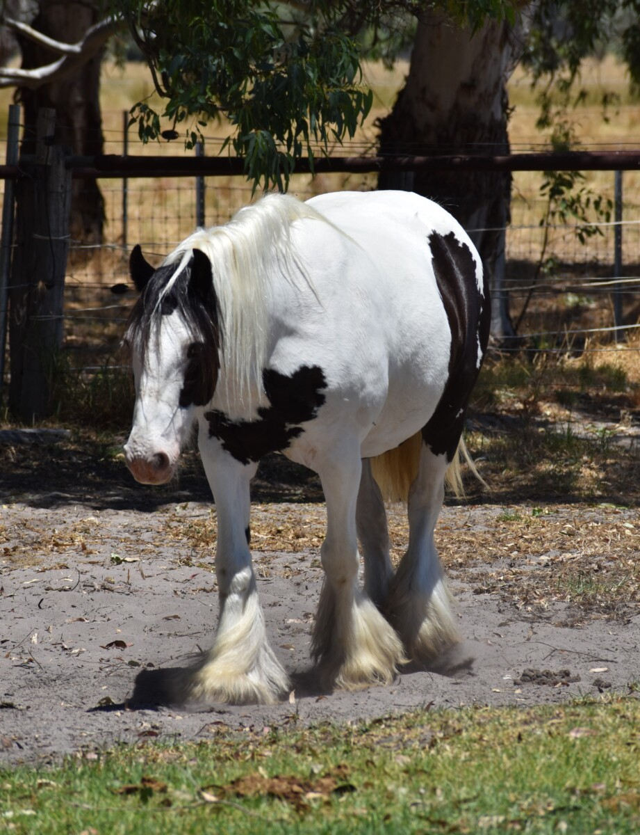 Ballinasloe Hurricane (IIU) aka Harriet is a Black tobiano Purebred Gypsy Cob Mare.