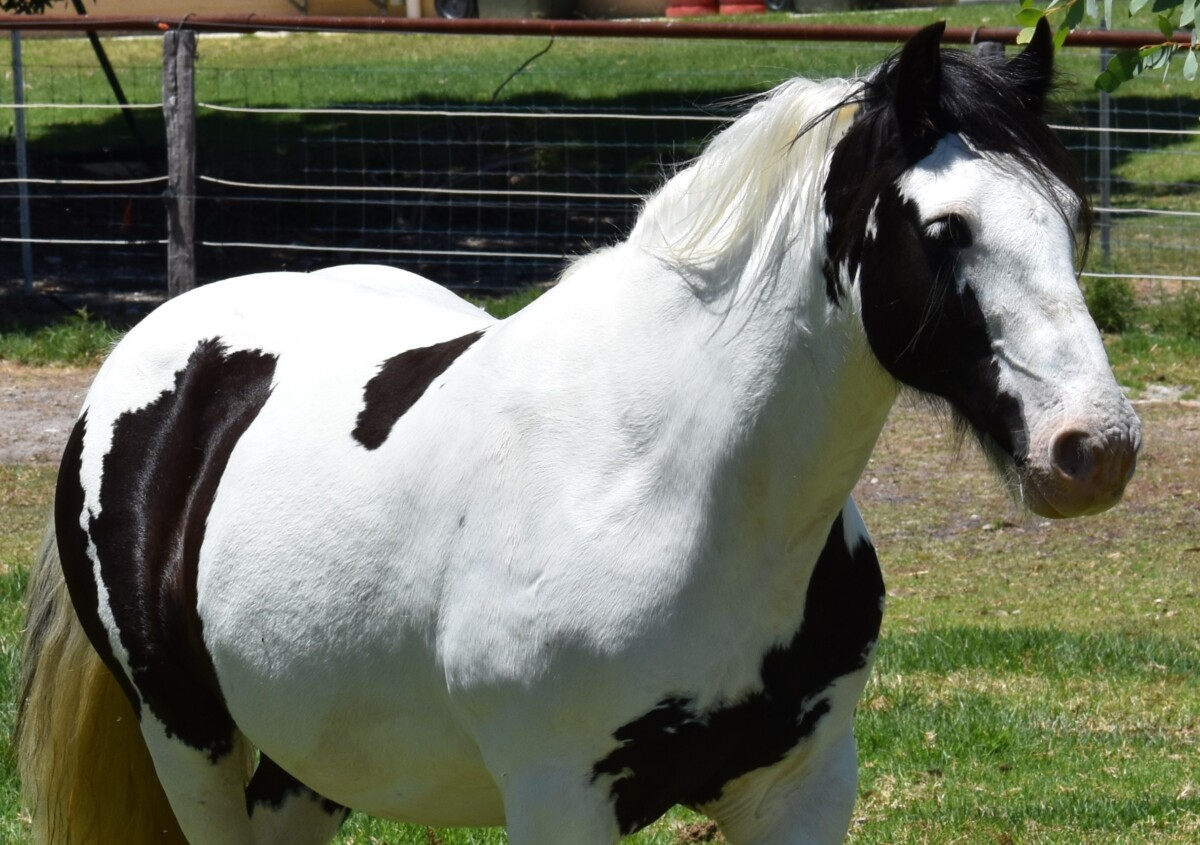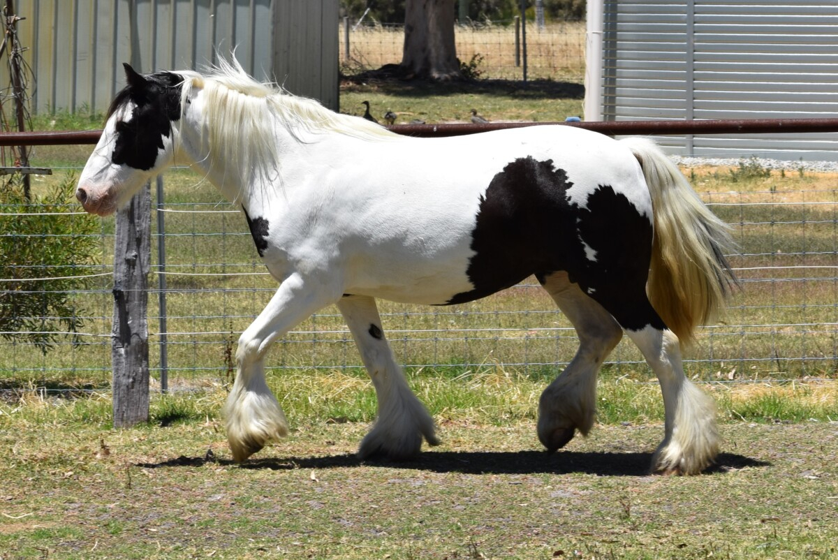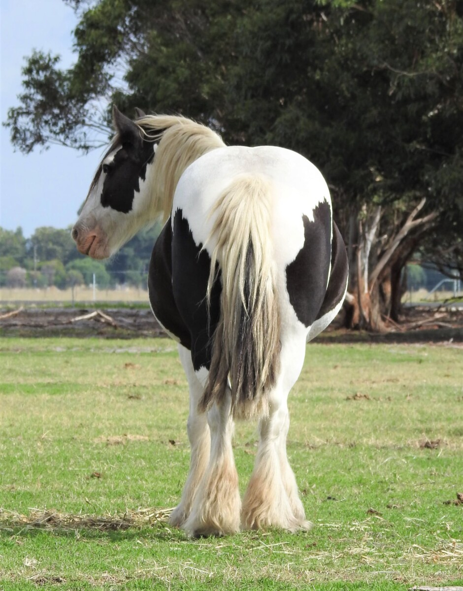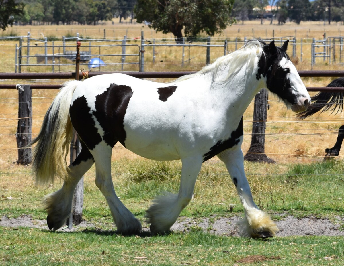 Ballinasloe Hurricane (IIU) aka Harriet is a Black tobiano Purebred Gypsy Cob Mare.