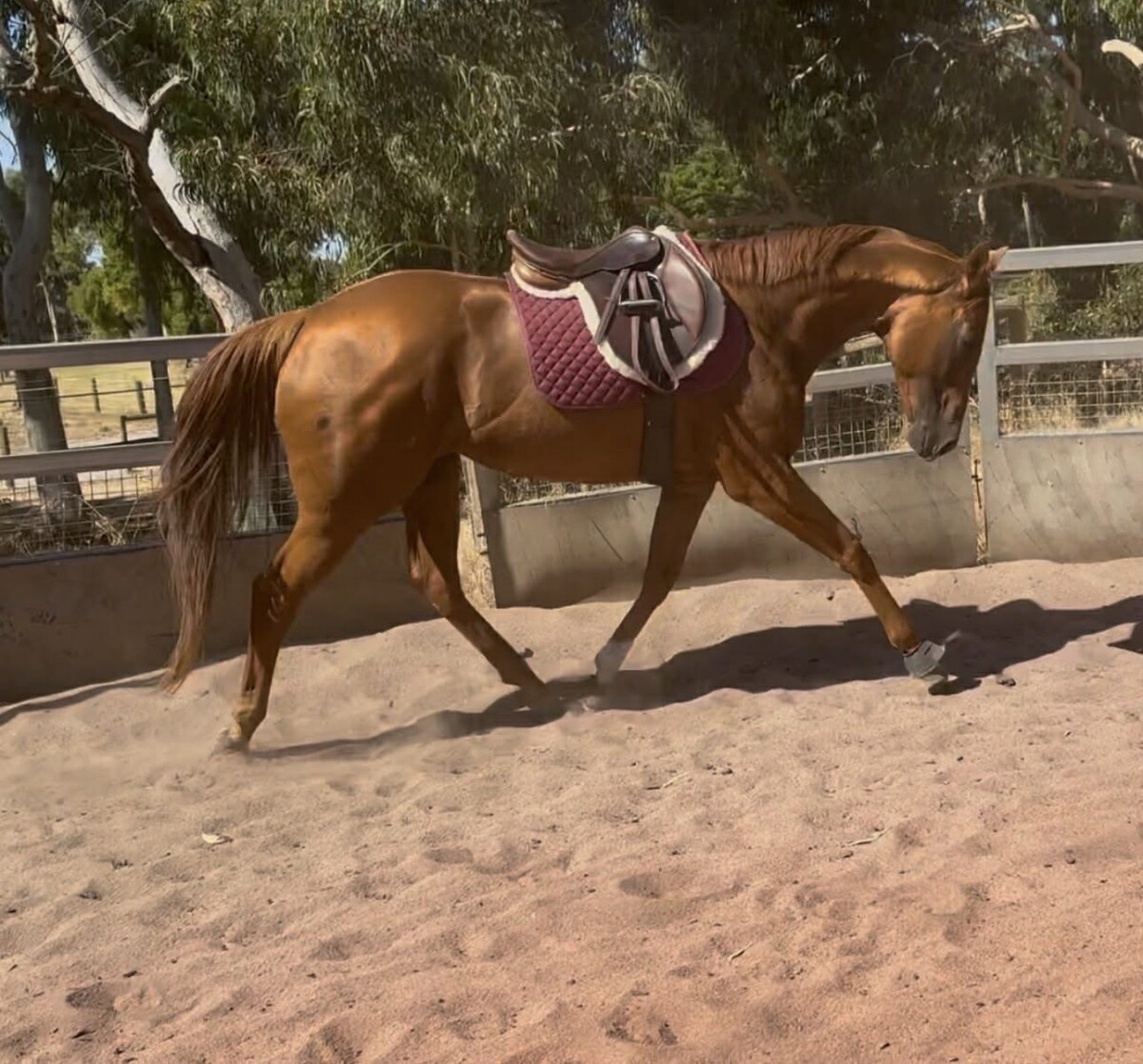 OTTB mare, Dottie is a beautiful mover who naturally carries herself in a frame, she is a beautiful girl on the ground and in the saddle and an absolute pleasure to have around