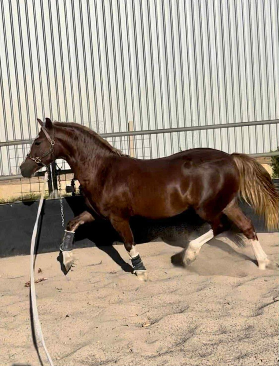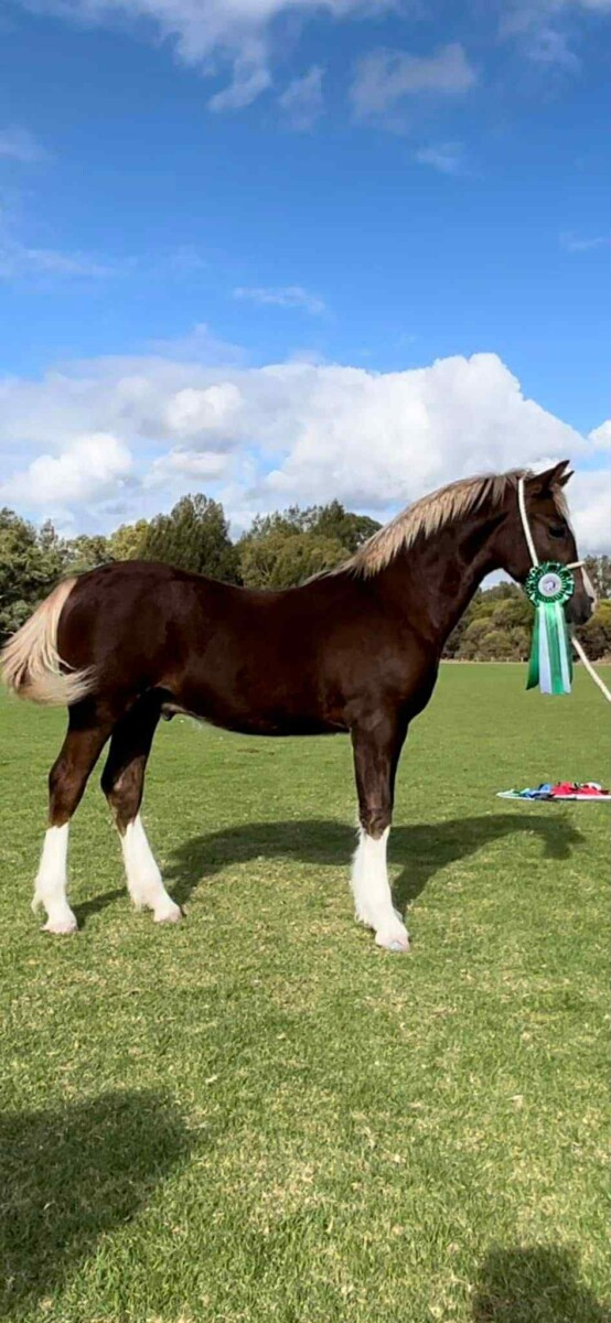 Dosty is a 2 year Welsh Cob He is ruffly 14h,  should mature 14 to 14.1. He was shown as a  baby and was Runner up Best welsh.  All his brothers have gone on to be ridden ponies all over Australia . His Sister we have still and have been riding her until this breeding season where she has gone in foal. We  own both his parents who can be viewed at the stud. He is great to stable, he leads off the quad bike. He is great out with others. He was stabled all winter currently out on summer grass.  Loads of photos of brothers and sister to view. .  Last 3 photos are of one of his brothers to you an idea
