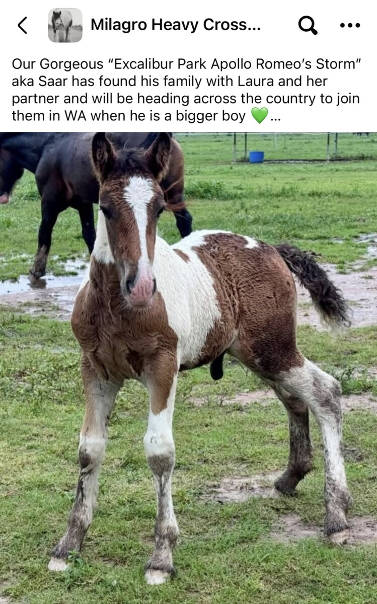 Romeo has the kindest nature imaginable. He is excellent for the farrier, well-mannered in every way, and truly doesn’t have a single bad bone in his body. He completed four weeks of professional handling training in QLD with Casey McClead, where he was incredibly well received and very much loved. I am more than happy to provide genuine buyers with full training footage, videos, and commentary.
