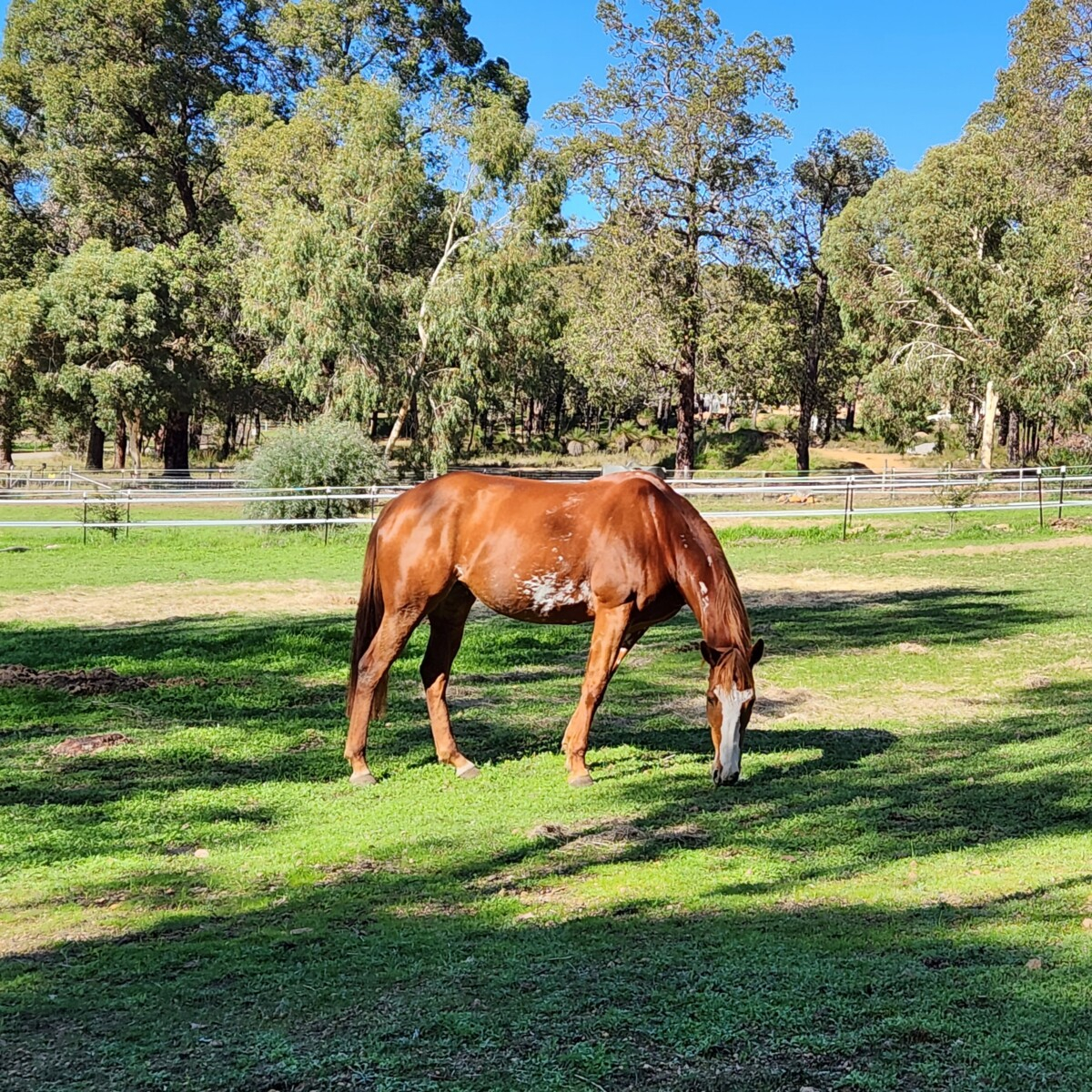 Elle is barefoot and has great feet. She is ridden on an arena barefoot and bush in scoot boots. She would benefit being shod if on harsh ground/eventing.