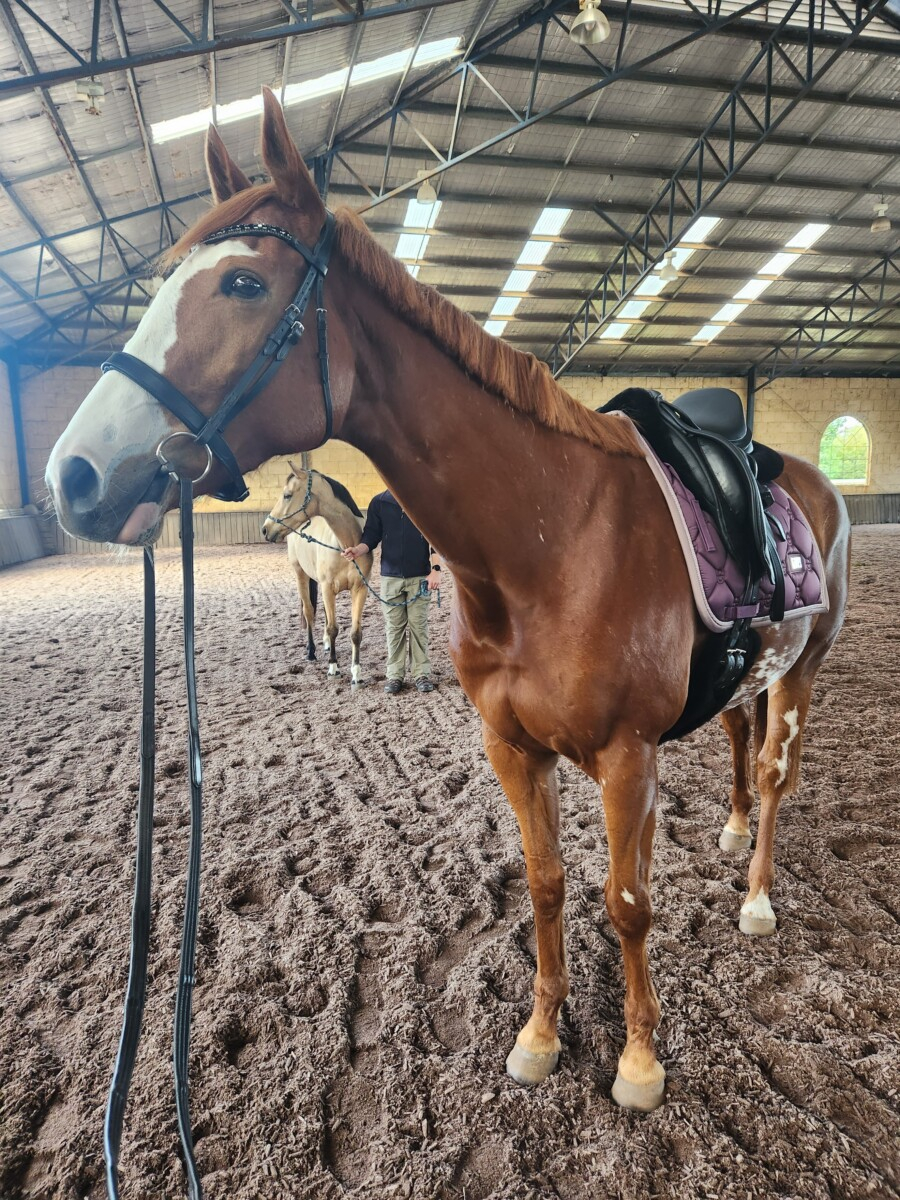 She has a sensitive mouth and will not enjoy a rider with hard hands or who pulls her in every direction. She is ridden in a trust bit which she works well in or bitless.