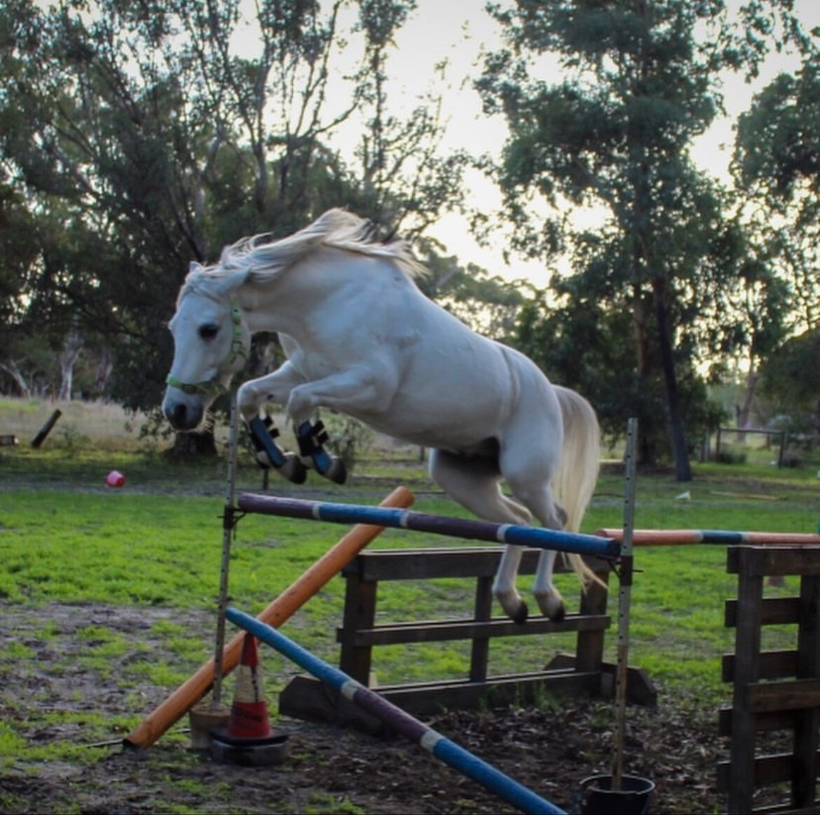 Trooper is known for being the ultimate all rounder with a big personality that is hard not to love. He’s a been there done that participating in a variety of things over the years such as pony club, showjumping, eventing, Grand Prix & hicksteads, mounted games (PPMG & MGA), the Perth Royal Show, beach days, bareback, you name it! With this, Trooper is smart he knows what kind of rider he has on his back and will take advantage of someone nervous or inexperienced. To get the best out of him he will need a confident and capable rider we would not recommend him for a first ridden.