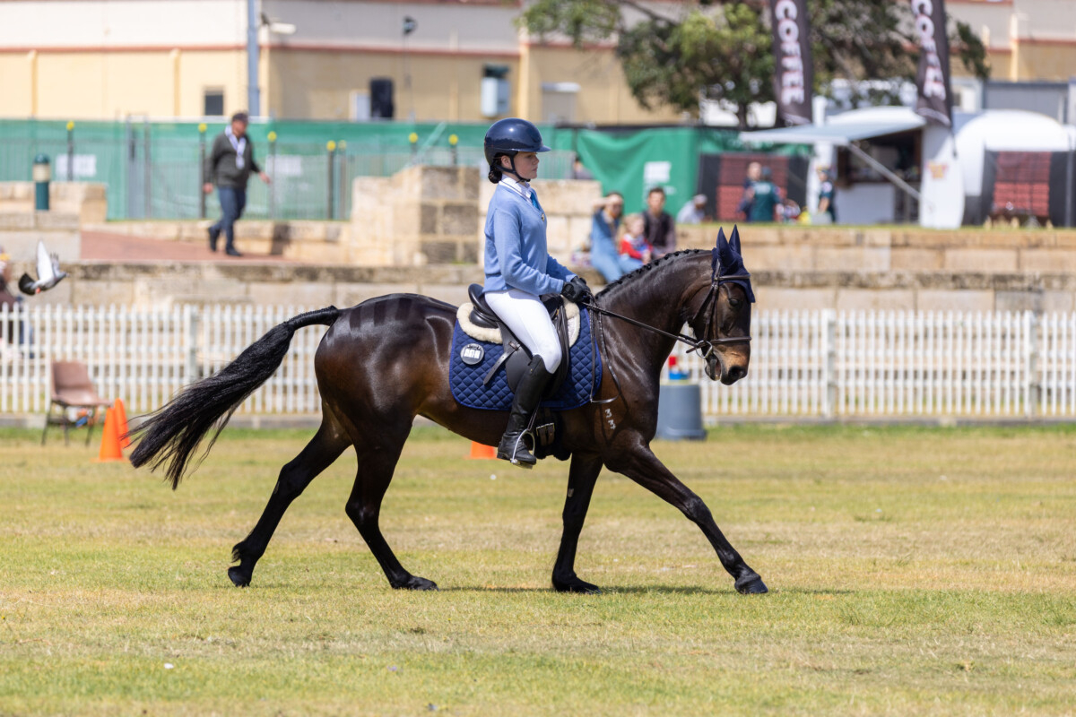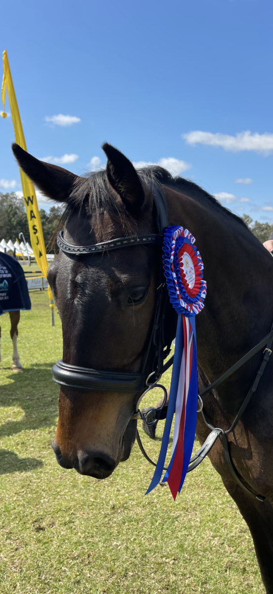This year she won the 70cm combined training at PC state show jumping as well as Wanneroo PC combined training rounds. She also entered the Perth Royal Show this year and did not put a foot wrong handling the atmosphere extremely well. She won overall champion show horse and won 2/3 jump classes in horrid weather. In saying this she moves beautifully and ready to move into Novice dressage with all recent Preliminary scored well over 70%