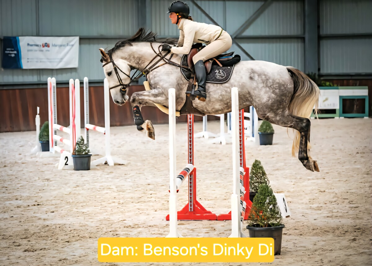 Her dam, Benson's Dinky Di is by Dinkin (Diarado x Cassini I) a lovely modern young stallion with very correct conformation. Benson's Dinky Di displayed excellent technique over a fence and has since entered the sport through sale.