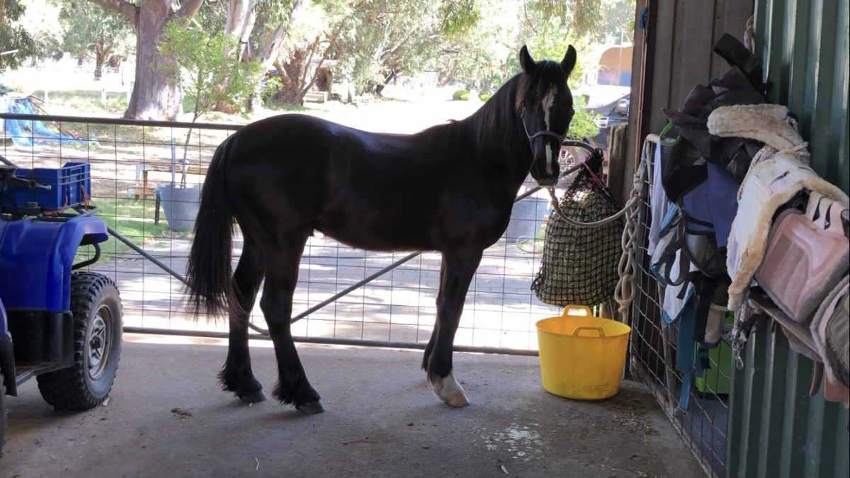 Tommy has had basic handling and he is easy to catch, handle, rug, wash, tie, worm etc. He is still learning to float but has done it a few times with company. He has a short attention span for the farrier but nothing nasty.