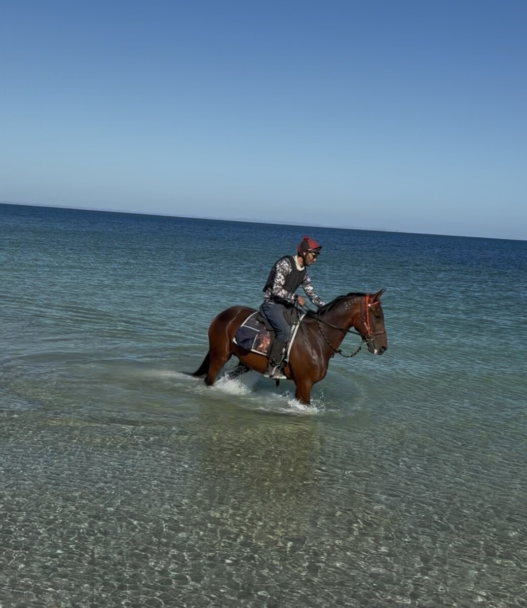During his time with us he has taken to ridden work like a pro. He excels in his arena work, and has proved himself to be reliable and sensible out and about on trail rides, at the beach and on the farm alone and in company.