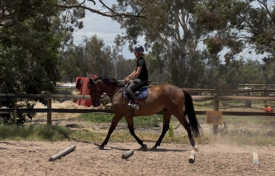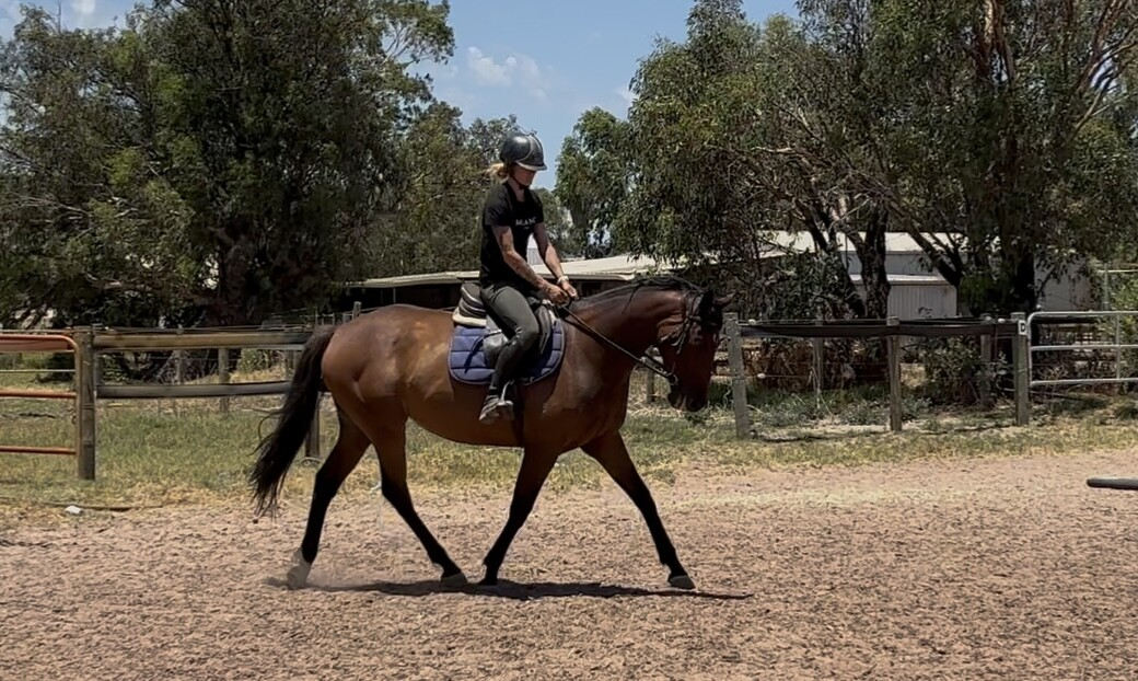 She works in a frame and has established transitions and is beginning to work on some basic laterals.
