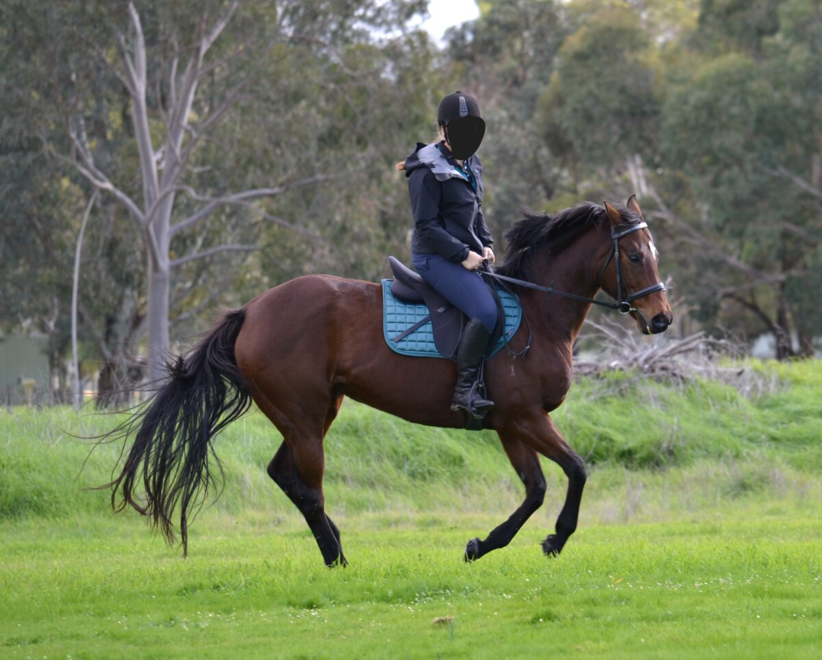 Jumping and cross‑country over 60cm have not been her favourite activities, which may be linked to our daughter’s lack of confidence in this area. A more confident rider may bring out more in her, but she is best suited to flatwork, dressage, pleasure riding and general all-around activities. She has no buck, bolt or rear, and no health issues.