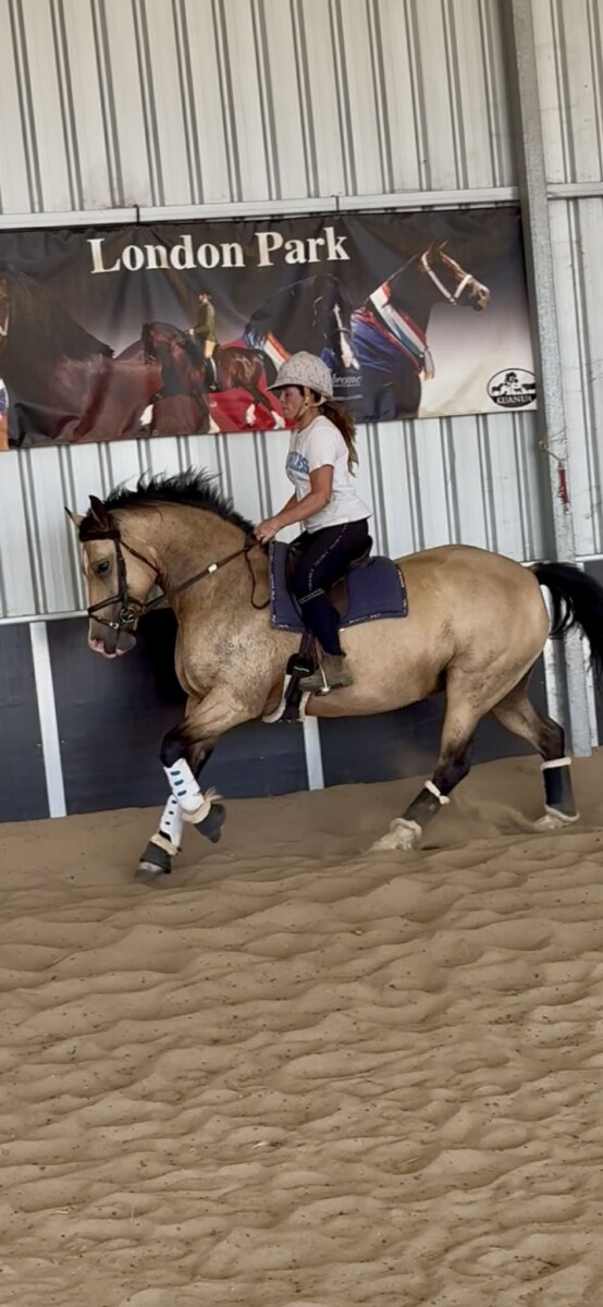 DIOR was started by us many years ago. She was great to get going under saddle, no problems at all. She did a mix of arena work getting all the basics well established along with riding out around the farm and riding up into the hills. She isnt a spooky type, felt very safe riding her out. Since then she has done bits here and there... going out to cob club, riding at shows for experience without competing, meeting up with us and a few others to go for rides out different places. She has a good understanding and solid basic education.  Due to her past owner  working full time she really hasnt done a great deal of work, Id still call her green. She has come back to us a few times to do some more schooling and a little bit of jumping so I know her really well. Ive also shown her inhand  when she (and I ) were younger.
