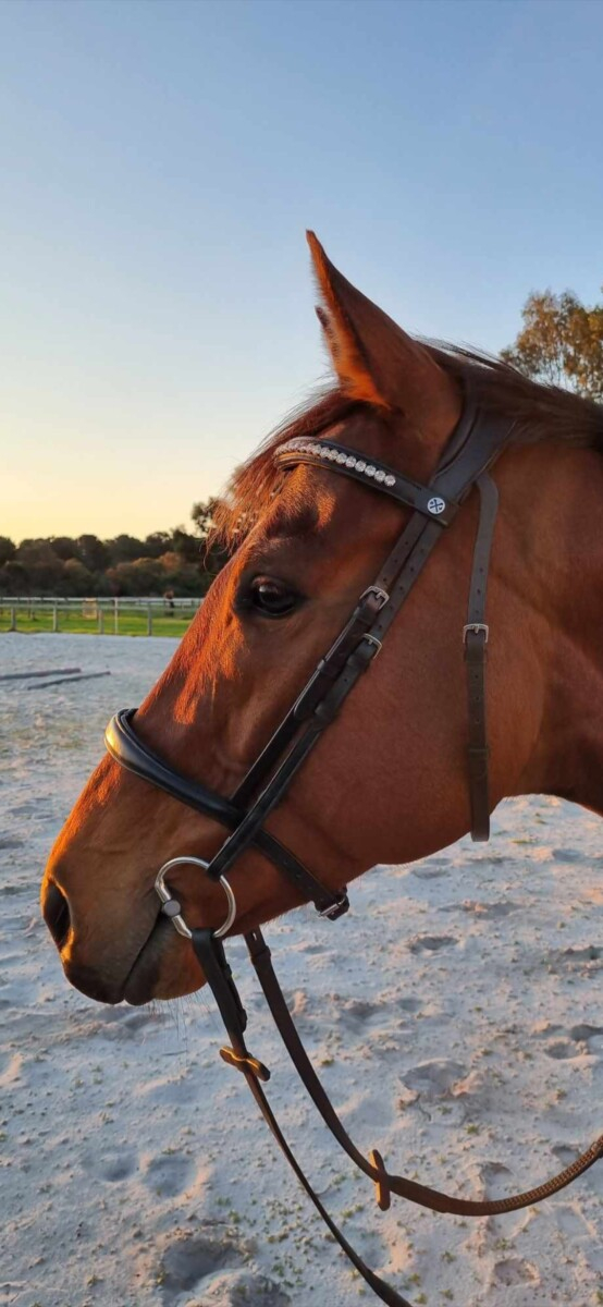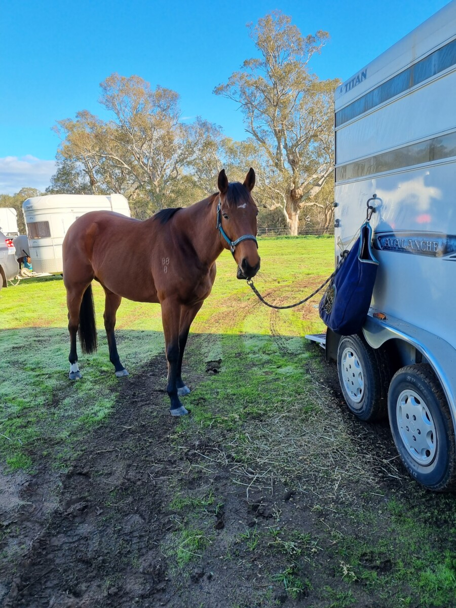To ride Money can be sensitive, especially with her mouth, however she is a lovely forward ride, always wanting to please, regularly tries hard and hasn't shown any buck/kick/rear/bolt. To take out, Money only cares if she has food, as long as she has a bag of lucern infront of her she will happily stand tied at the float all day. Money thrives off consistency and regular work. The only reason Money hadn't been competed was due to rider injury (not horse related)