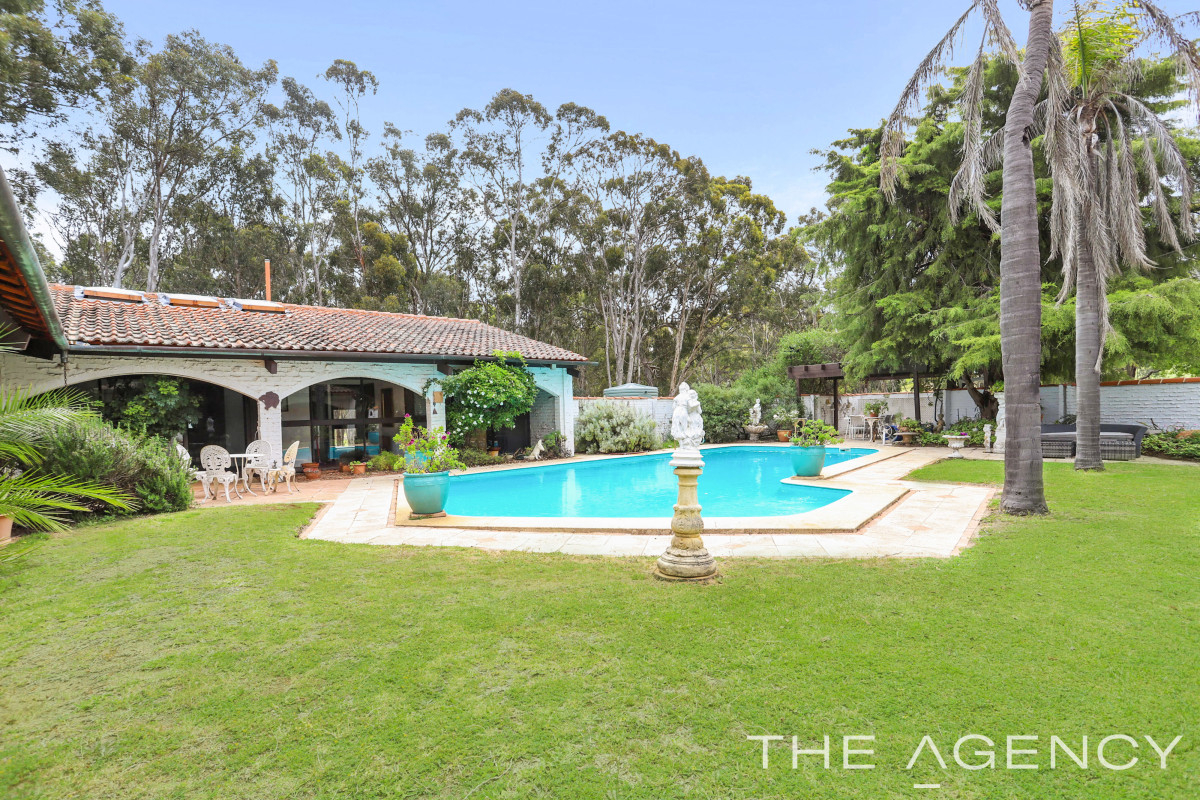 The residence wraps around a large lawn area with a massive sparkling salt water pool and the large windows create an atrium-style effect from within the home. The gardens are well-established and are kept lush and green all year round courtesy of a productive bore.