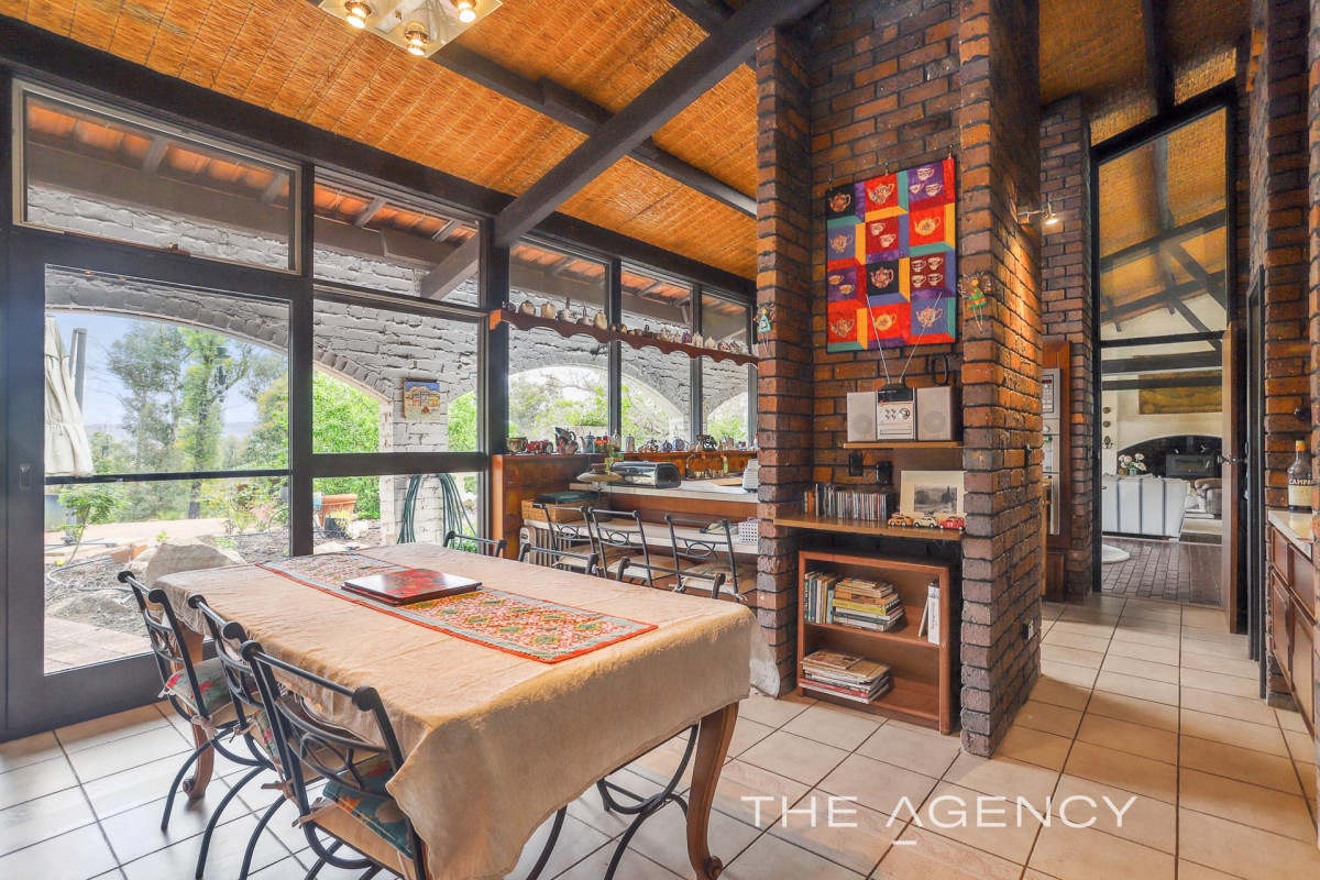 Architect Designed and steeped in a rich sense of history and retro in style, the expansive and bespoke residence is nestled amongst established gardens. Soaring raked ceilings with thatch, slate and sealed brick flooring, bagged wall finishes and the extensive use of exposed timber beams create a home of warmth and a delightfully rustic charm. Massive floor to ceiling windows throughout the home flood the home with light and showcase the pretty views out over the grounds and the pool to great effect.