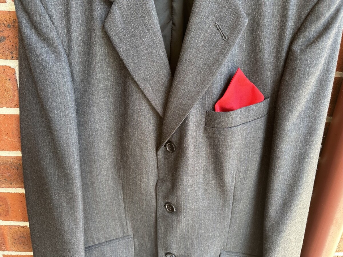 The measurements for the hacking jackets are 32 inch (81cm) chest, with a length of 32 inches (81cm). Both fit a slim teenager, with very little wear overall (equivalent to small men's sizing).