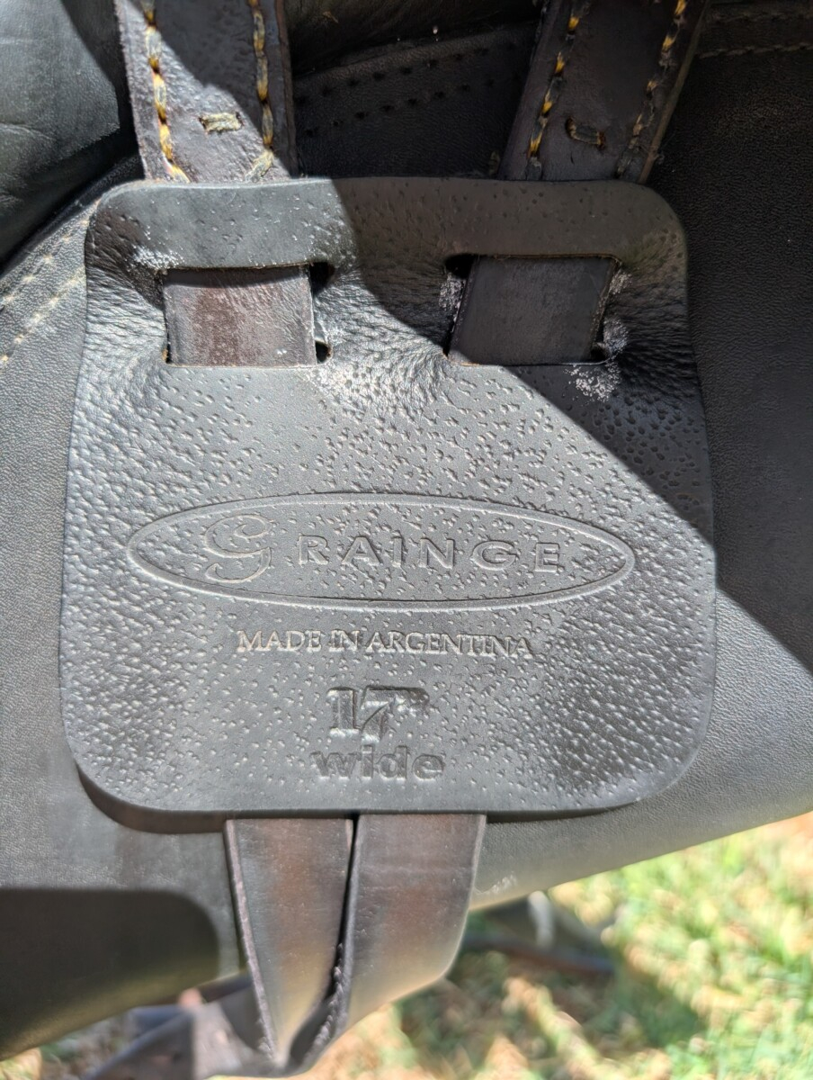 Grainge 17" dressage saddle. Well loved and looked after, needs an oil after being in storage, but is clean and safe. Selling due to change in discipline, and needing to make space in the tack room. Bag included - broken zip but covers saddle.