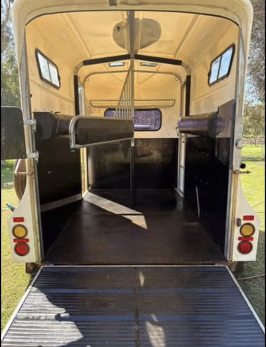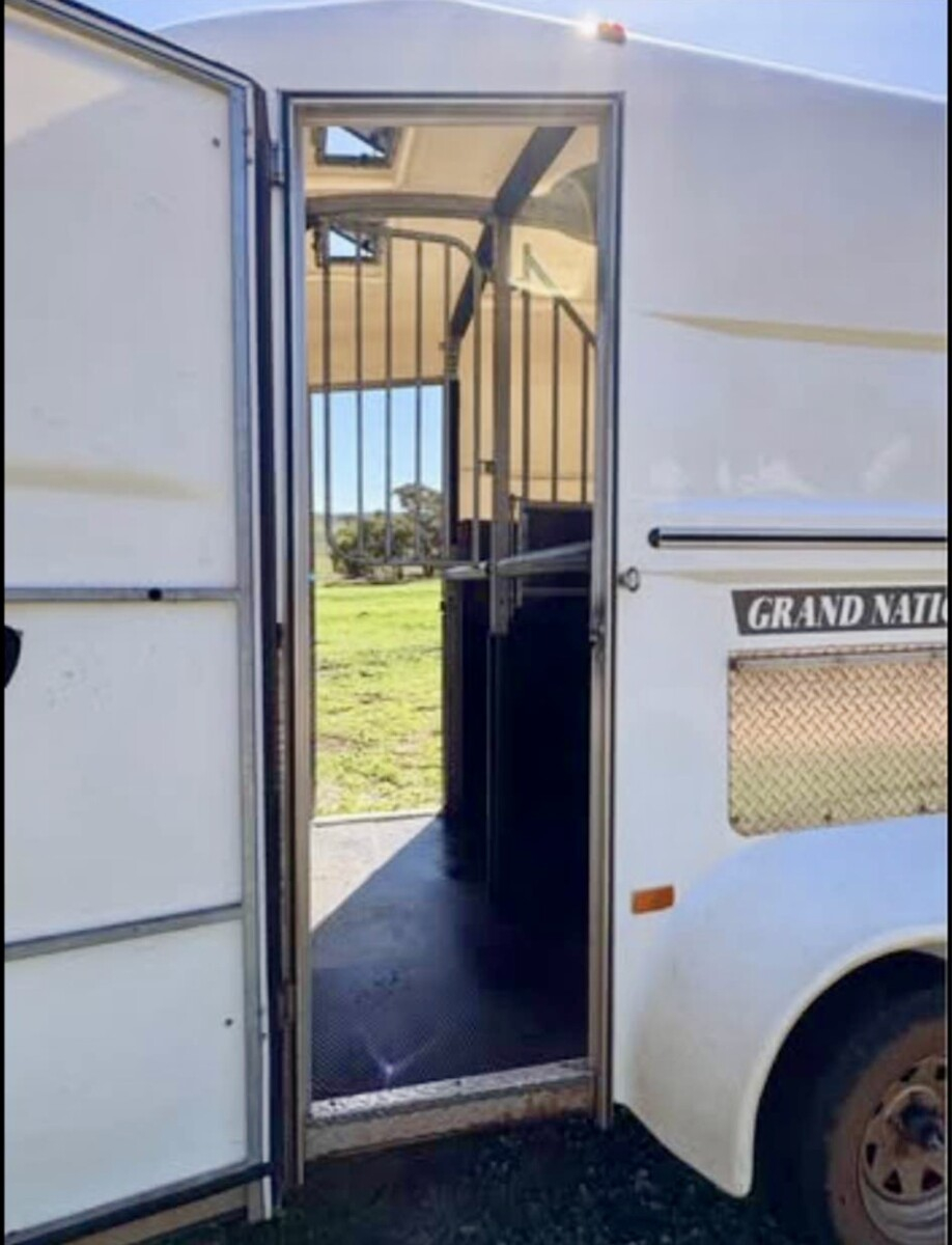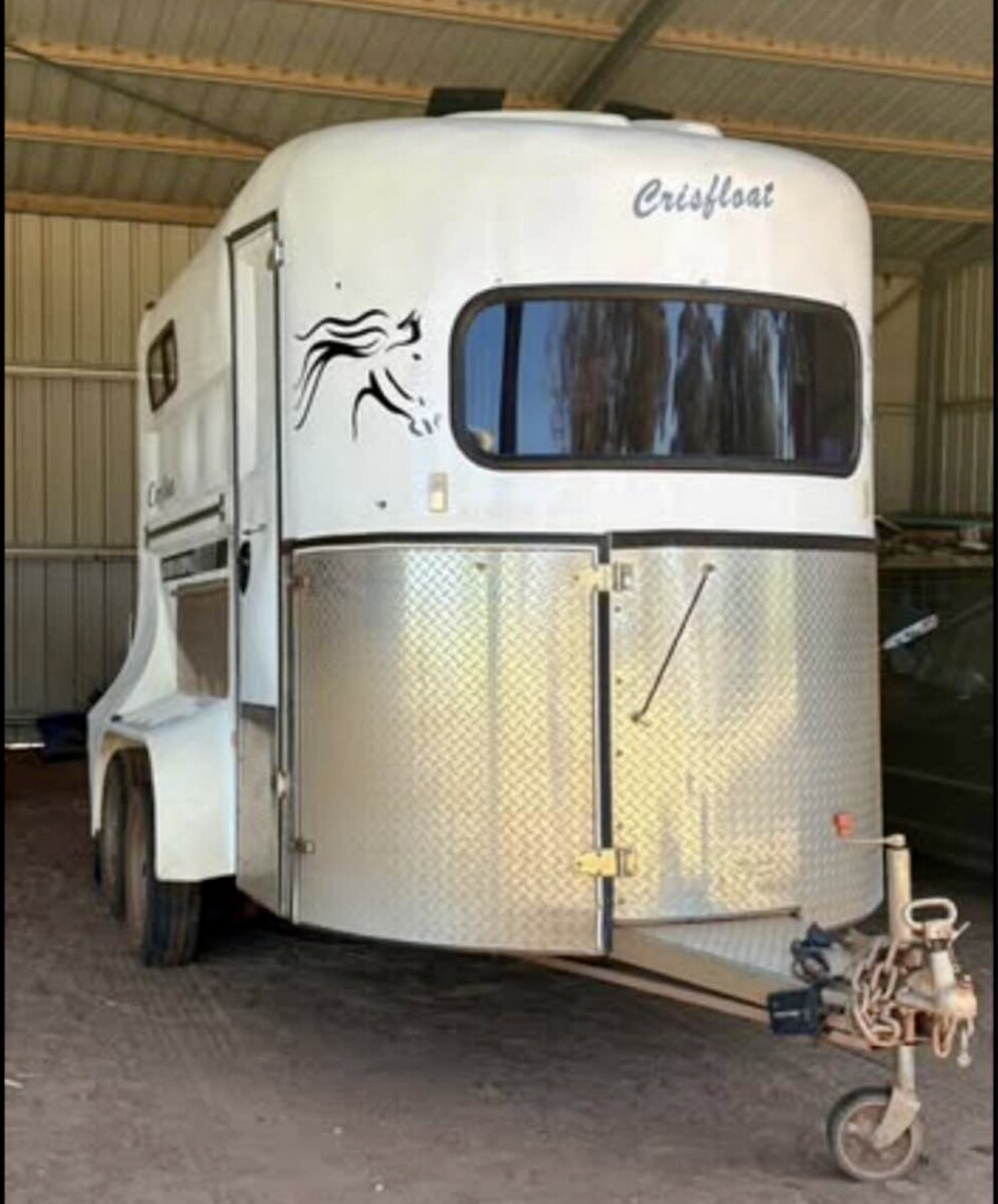 Well‑maintained Crisfloat Grand National float offering safe, comfortable transport for two horses. The straight‑load design, combined with full anti‑scramble padding, gives horses a secure and confidence‑building ride. An overhead 70L water tank adds convenience for washing down or watering on the go, making it ideal for competition days or longer trips.