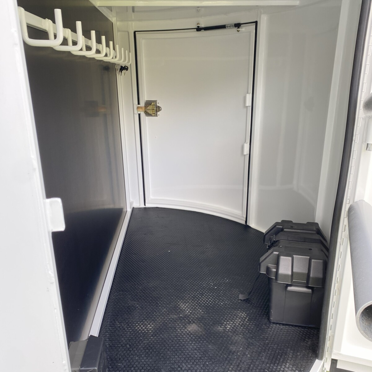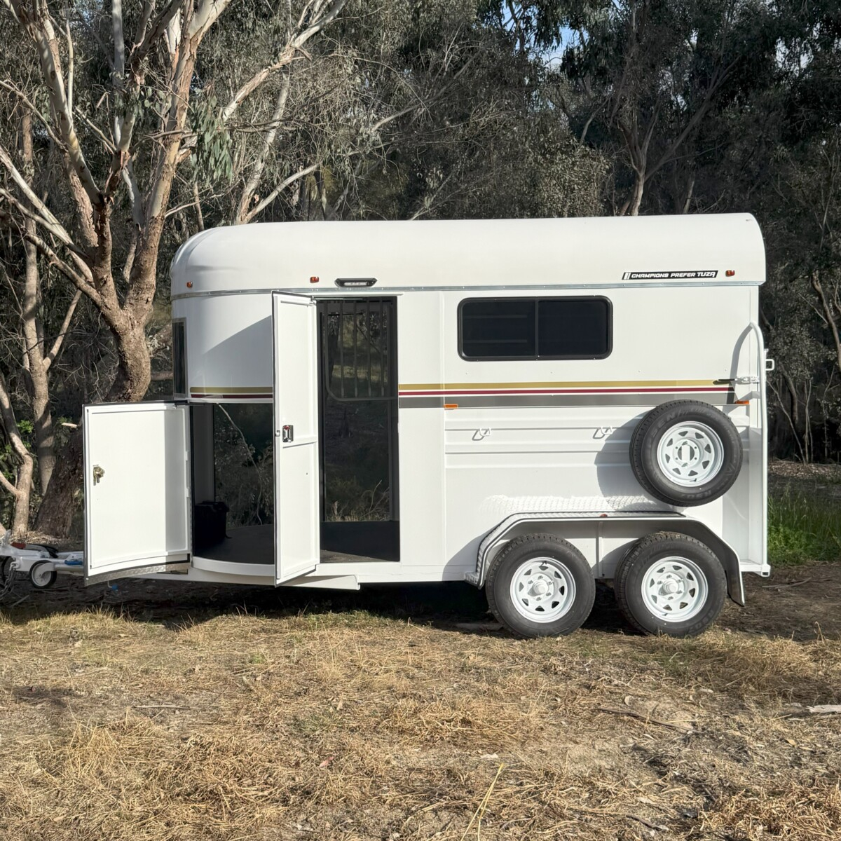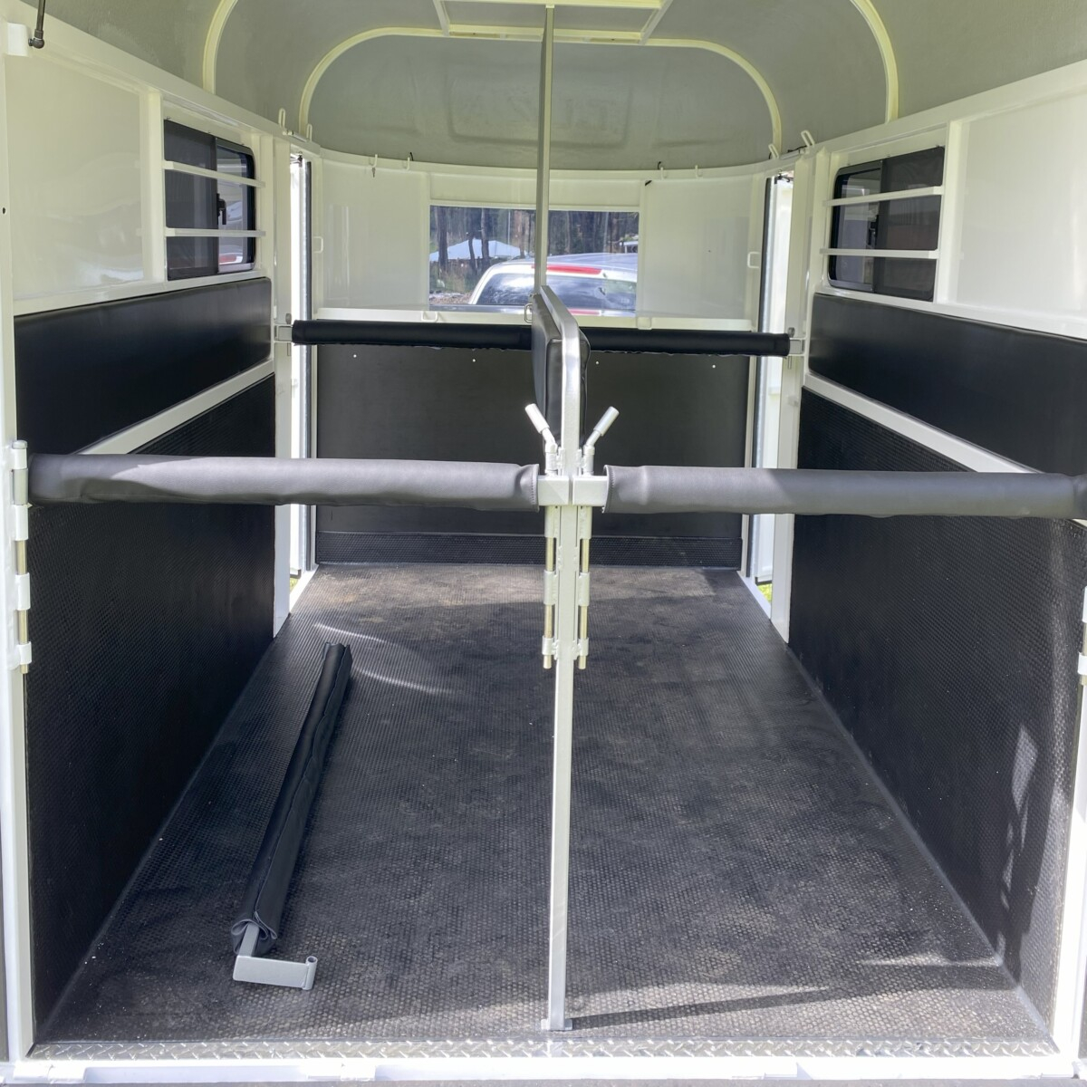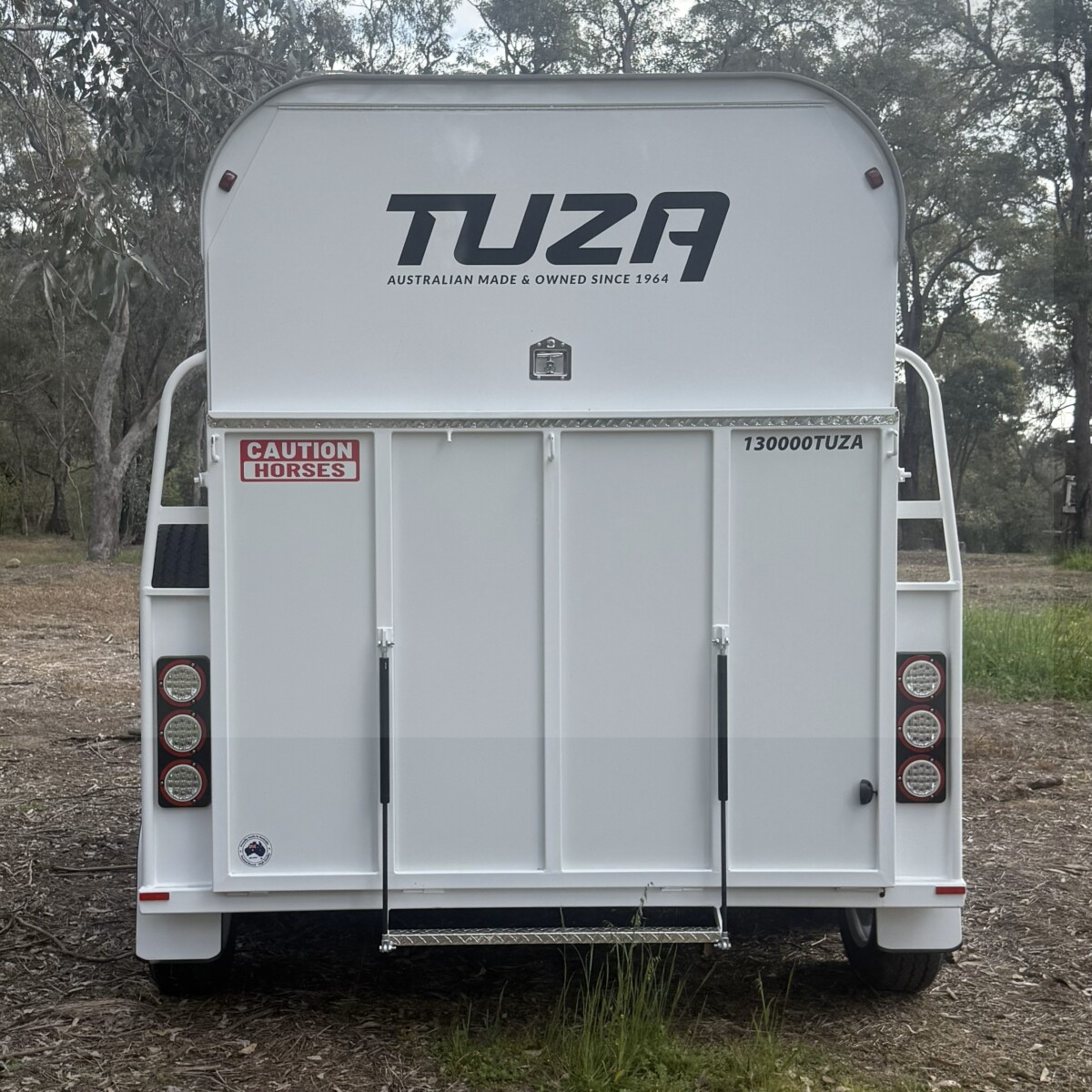Rear gas lift up door with rod to stay slightly open when travelling for airflow