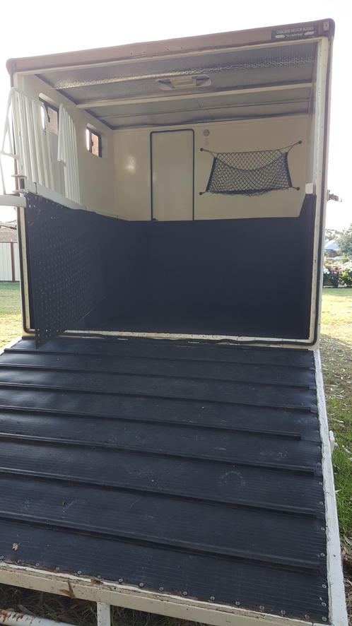 heavy-duty tail gate lined with Sure Grip ramp mat. Hydraulic operation.