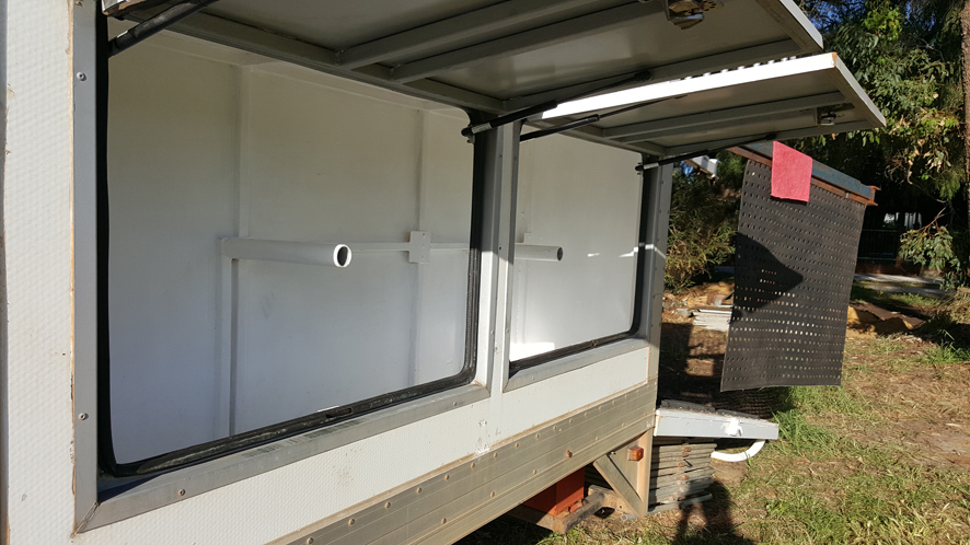 chest box accessible from outside of truck. Doors supported by professionally